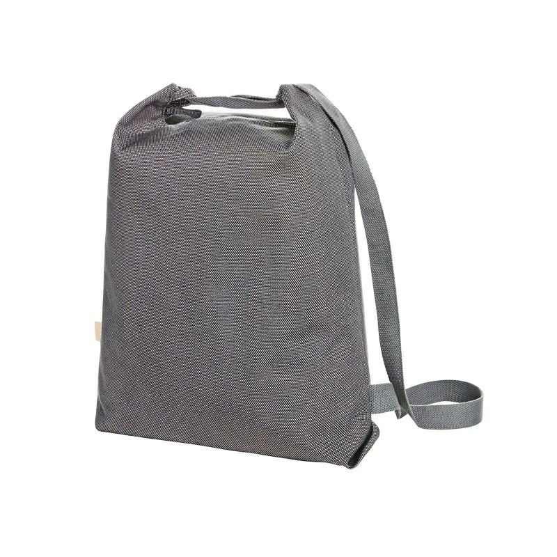 Cotone/poliestere. Innovativa multibag indossabile a zaino o a tracolla, scomparto principale e tasca interna con chiusura lampo. Dimensioni: 32x40x9 cm. Area personalizzabile: frontale 22x33 cm.