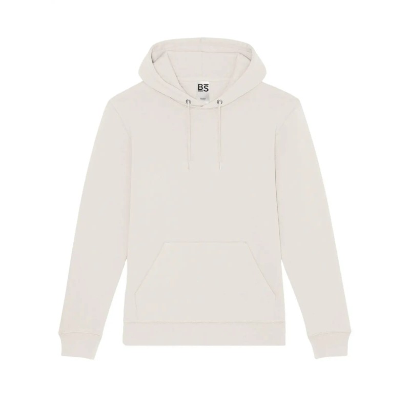 Felpa con maniche set-in, unisex, felpata internamente, cappuccio a doppio strato, occhielli in metallo, cordini con punta in metallo, grande tasca a marsupio, struttura con cuciture laterali, fascia in vita e polsini in costina. Etichetta strappabile. Tessuto PST: interno in poliestere ed esterno 100% cotone.