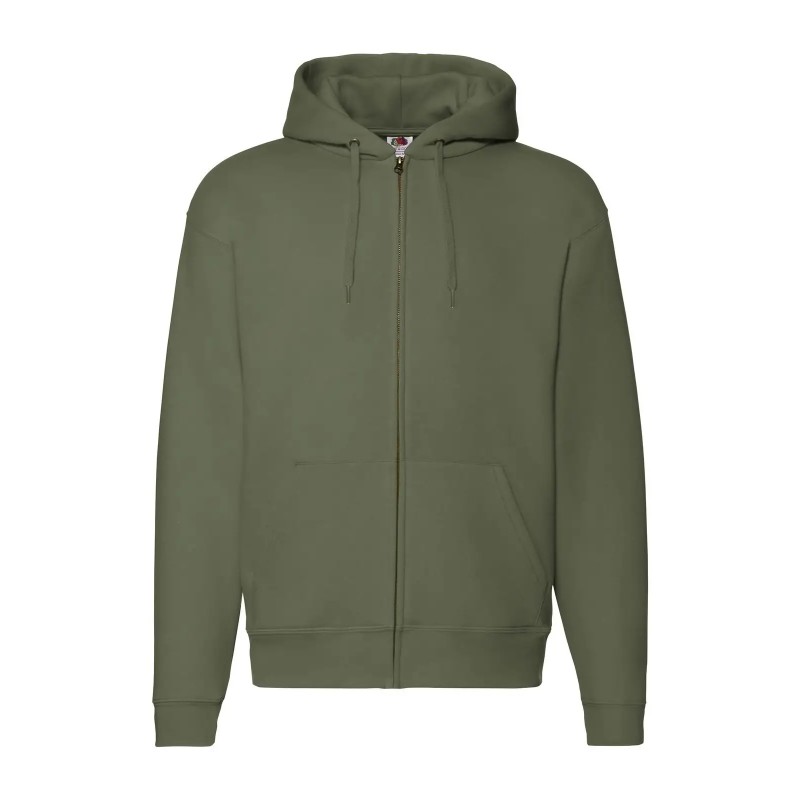 Felpa con maniche set-in, cordoncino in tinta, tasca a marsupio, cerniera nascosta per favorire la stampa, felpata internamente, struttura con cuciture laterali. Etichetta removibile.