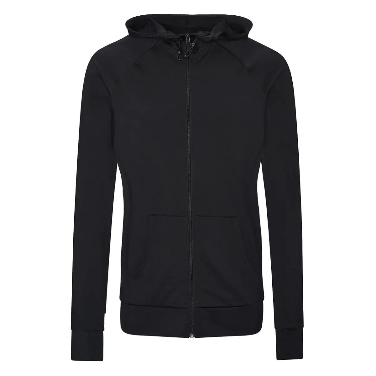 Corpo: 89% poliestere 11% elastan. Felpa con cappuccio e maniche raglan da donna, tessuto misto poliestere, maniche melange a contrasto, tessuto traspirante ad asciugatura rapida, cappuccio regolabile, tasca a marsupio, zip intera, fori per i pollici.