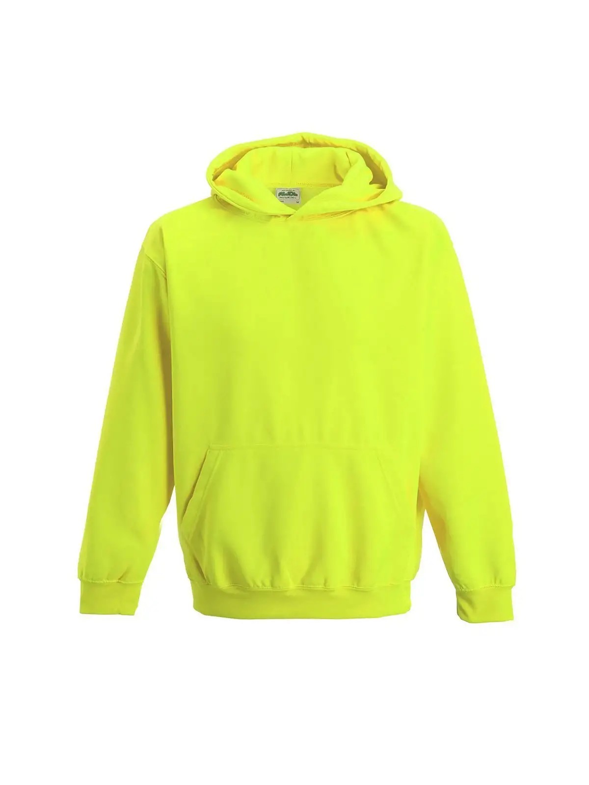 Felpa bambino dai colori molto accesi con cappuccio doppio strato, senza cordini conformamente alla normativa europea. Doppie cuciture a dettaglio, felpata internamente, tasca a marsupio. Polsini e orlo a costine. Etichetta a strappo perfetta per il rebranding.