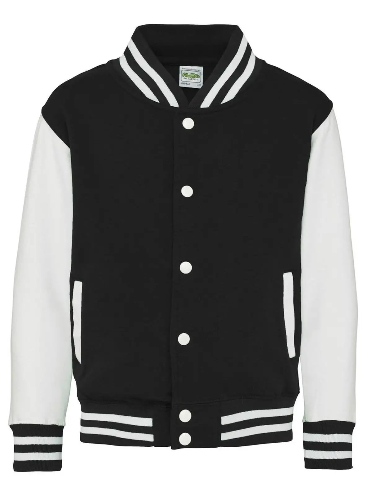 Felpa tipo baseball con maniche set-in in contrasto. Collo, polsini e vita con strisce in contrasto, chiusura con bottoni automatici, tasche a filetto, nastro di rinforzo al collo, felpata internamente, struttura con cuciture laterali.