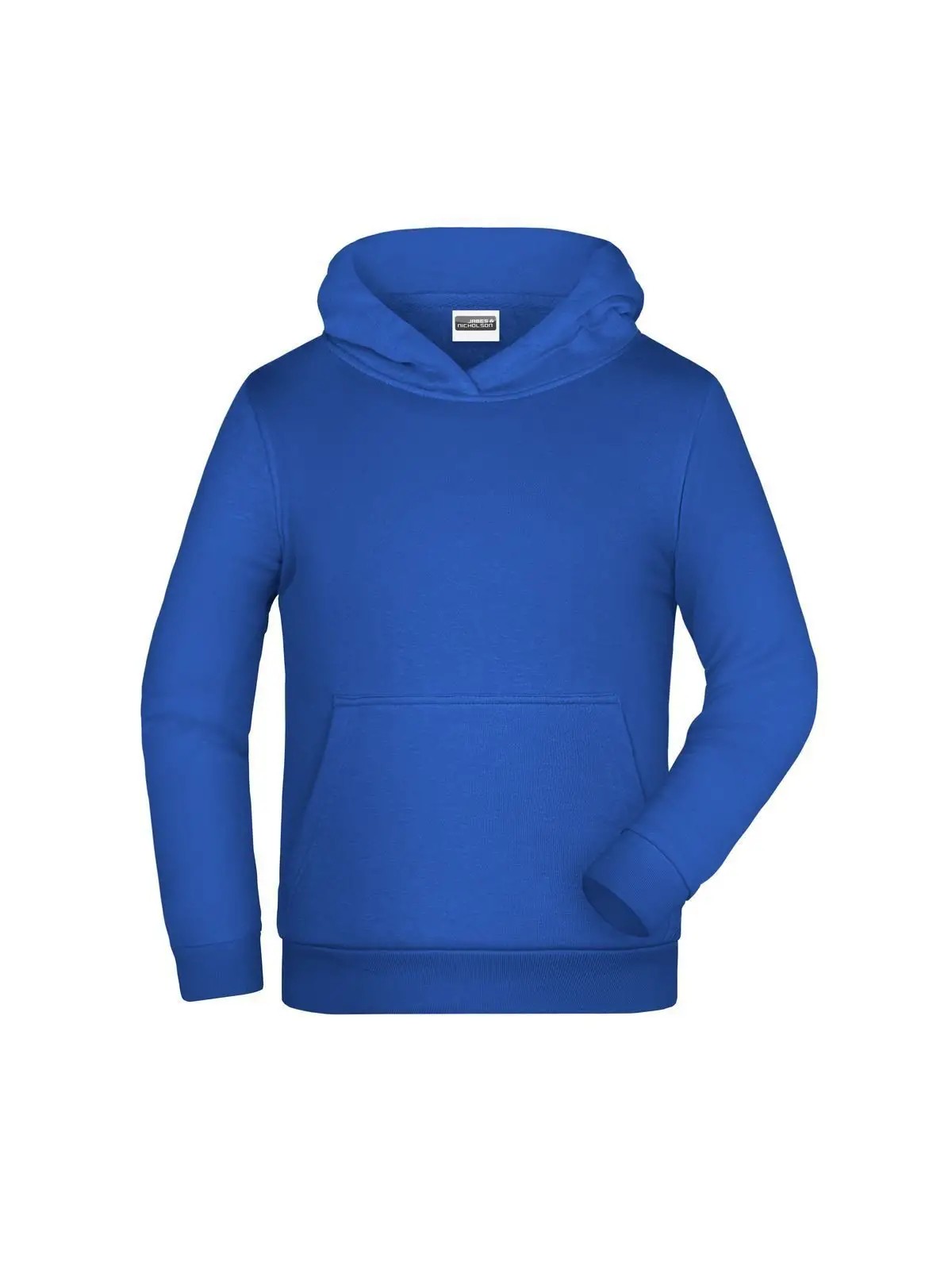 Felpa da bambino con interno felpato, cappuccio doppio strato con coulisse, tasca a canguro, necktape, bande nelle maniche in elastane, etichetta removibile.
