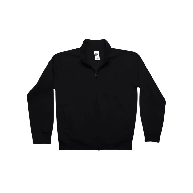 Felpa da bambino con maniche set-in, felpata internamente, zip intera, tasche a filetto, orlo inferiore e polsini con costina, struttura con cuciture laterali. Etichetta strappabile. Tessuto PST: interno in poliestere ed esterno 100% cotone.