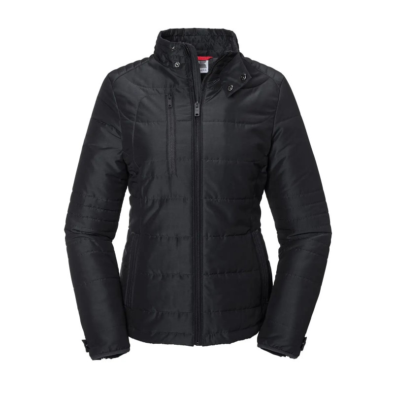Tessuto DWR ad alte prestazioni trattato con Aquapel di Nanotex,senza fluoro e PFC Giacca donna con imbottitura ecologica di Dupont Sorona. Taglio moderno. Collo montante con 2 bottoni a pressione e pattina frangivento interna per la protezione dal vento, tasca interna con zip, pattina decorativa per la manica con bottone a pressione. Accesso discreto per la decorazione sul lato sinistro interno del torace.