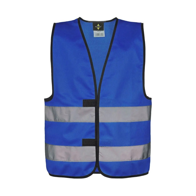 Gilet di sicurezza per bambini. Due fasce riflettenti larghe 5 cm intorno al corpo, misura regolabile grazie alla doppia chiusura con velcro. Confezionato singolarmente in una pratica borsa in polietilene.
