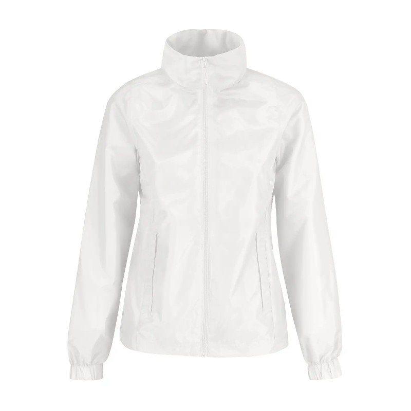 Giacca antivento e antipioggia, termoisolante e idrorepellente, esterno poliestere 210T taffetà , interno 100% poliestere tricot. Taglio femminile. Cappuccio ergonomico a scomparsa, due tasche frontali e taschino interno.