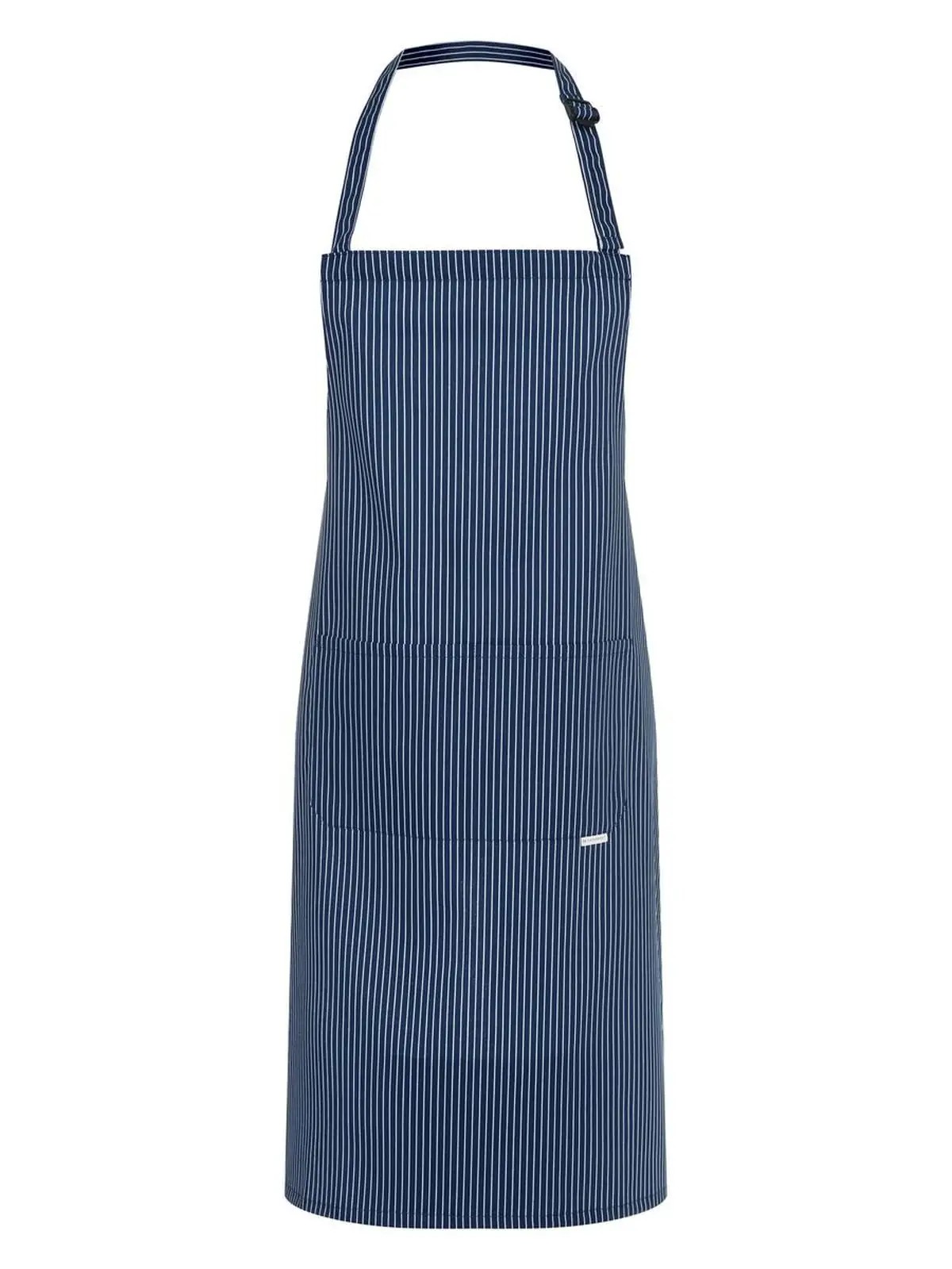 Grembiule Carlo, cotone twill, 185 g/m² tessuto rifinito, irrestringibile, stampato a colori a righe bianche - grembiule con pettorina con cinta dello stesso tessuto del grembiule, con cucitura rinforzata - fibbia per regolazioni di lunghezza fino a 70 cm - tasca cucite con 2 scomparti, 34 x 18 cm.
