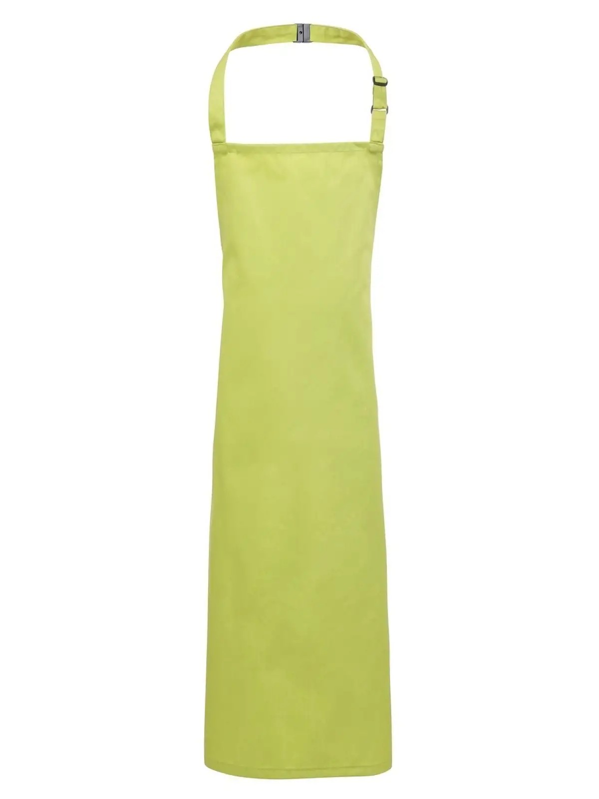 Grembiule con pettorina in twill, senza tasca, laccio al collo regolabile con fibbia, allacciatura posteriore con lacci di 50 cm. Lavabile in lavatrice domestica a 60° e 85° in lavatrice industriale.