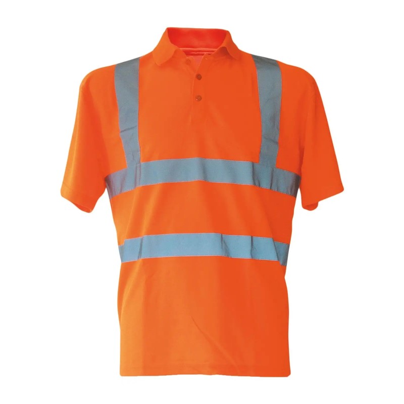 Polo ad alta visibilità , certificazione EN ISO 20471:2013 + A1:2016, colore arancione conforme anche alla normativa GO/RT 3279, Oeko-Tex® Standard 100. Due fasce riflettenti larghe 5 cm intorno al corpo, due fasce riflettenti larghe 5 cm perpendicolari alle spalle, materiale morbido e traspirante, durata delle proprietà riflettenti in conformità alla normativa EN per 25 cicli di lavaggio a 40°C. Confezionato singolarmente in una pratica borsa in polietilene.